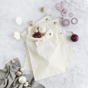 Perfect to use in place of disposable plastic bags when shopping for fresh fruit, vegetables, herbs and bulk goods. Muslin is particularly good for bread and purchasing dry goods such as rice, pasta, legumes and beans at your favourite bulk food store.