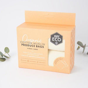 Organic Cotton Muslin Produce Bags - 4 pack
