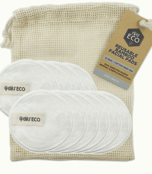 Ever Eco's reusable bamboo makeup remover pads are a perfect alternative to disposable cotton pads/balls. Reduce the need for disposable single use cotton balls. These zero waste makeup remover pads are ideal for cleansing, removing make-up, micellar water, toning and face mask removal.