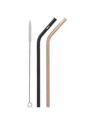These colourful stainless steel straws are perfect for sipping your favourite drink anytime, anywhere. Say goodbye to single use plastic straws and soggy cardboard straws. These straws feature a unique, rounded mouth piece for safe and comfortable sipping. The set includes two bent straws and a cleaning brush.