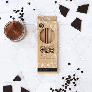 Reusable Stainless Steel Straight Straws - Rose Gold 2 Pack