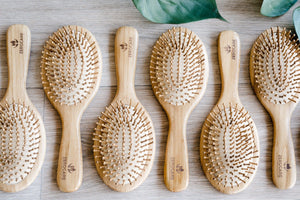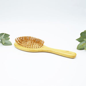 Brush out your blow-dry with this eco-friendly Bamboo Styler smoothing brush. These FSC Certified Bamboo Stylers are not only light weight, you will also notice the strong rounded head massage pins are also made from bamboo for intensive scalp stimulation, resulting in blood circulation through the scalp and healthy hair growth!