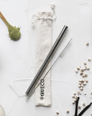 Enjoy your bubble tea or thickshake in an eco-friendly way by using a stainless steel reusable straw. This stainless steel straw is 12mm wide, perfect for enjoying those delicious bubbles or thickshakes and comes with an organic cotton pouch with cleaning brush. Be a true eco warrior by pairing this with one of our tumblers.
