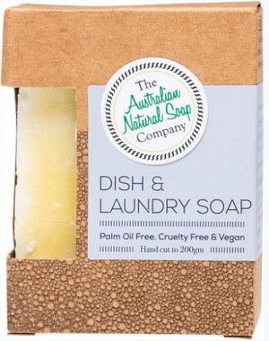 The perfect addition to your green cleaning zero waste kitchen and laundry! This versatile soap is made from 100% natural plant based ingredients and is palm oil free, vegan and cruelty free. This generous soap bar is great for washing dishes, laundry and surfaces and will replace harsh chemicals and plastic bottles.