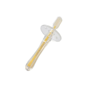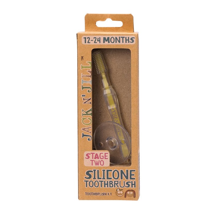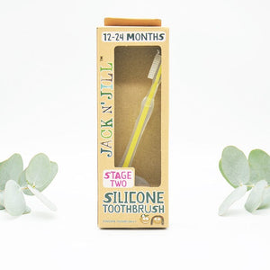 This silicone kids toothbrush is made with 100% food grade silicone, is easy to use and gentle on tiny gums. This brush is designed for cleaning 12 - 24 month year old's teeth and gums. It is BPA free, PVC free and phthalate free and comes with a safety shield which rests just below the bristles.