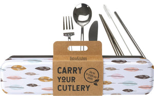 Choose to reuse with this cutlery set, your companion to zero waste take away or lunches. This kit featuring a sturdy metal carry case that contains full size cutlery, straw and chopsticks, all you need when you're out and about. Say goodbye to bendy single use cutlery for good, with this must have accessory for any eco warrior.