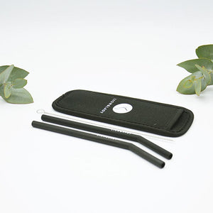 - Set of 2 bent silicone straws with cleaning brush and neoprene sleeve
