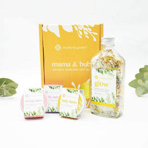 We've included our Nursing Balm to help support the adjustment to breastfeeding and prevent sore, cracked skin. Belly Balm to help moisturise and soothe stretching bellies before and after baby arrives. Baby Balm is a completely natural solution for baby skin and will help to prevent nappy rash and other skin irritations for bubs. Glow Bath Soak relaxes and restores, with uplifting Lemon Myrtle, Calendula & Magnesium salts.