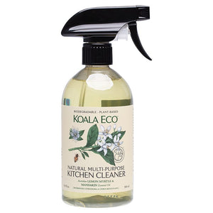 Keep your family safe with Eco Koala's powerful 100% plant-based multi purpose kitchen cleaner. This cleaner is made in Australian using lemon myrtle and mandarin pure essential oils. This natural cleaner kills 99.9% of germs and is packaged in 100% post consumer recycled plastic. You are able to refill, reuse and recycle these bottles. Kind to your family and the environment, this cleaning formula is biodegradable, plant-based, never tested on animals and is grey water and septic safe.