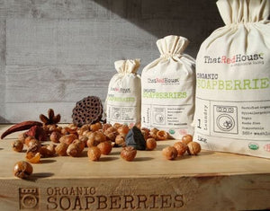 - What are soapberries: Soapberries are a fruit found on the Sapindus Mukorossi tree. The fruit is picked, the seed removed and the shell dried. This dried shell is full of 'Saponins' which reduce the surface tension of water, releasing dirt and grime from fabrics and surfaces. The tree grows in the Himalayan region of the world and the berries are used for many different cleaning applications. They are naturally antibacterial, anti fungal and hypoallergenic.