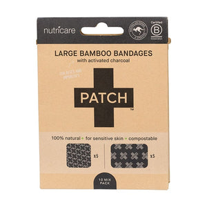 Patch Activated Charcoal Biodegradable Bandages - Large pack of 10