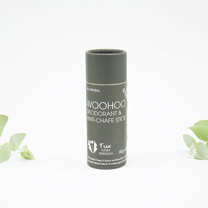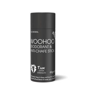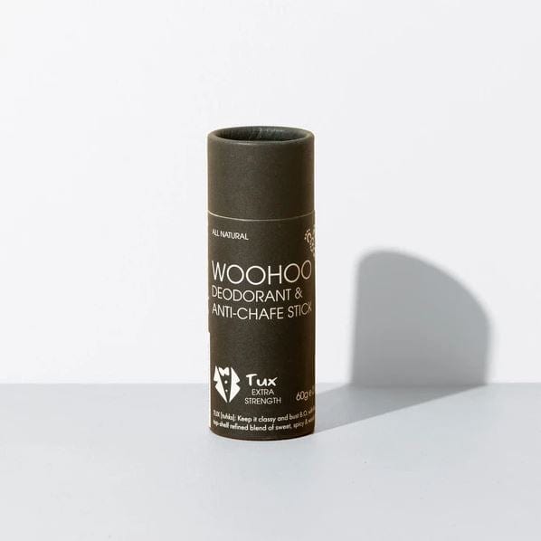 This stick is the answer to your eco dreams, it is vegan, 100% natural and housed in an biodegradable tube. The 100% natural, 100% effective Woohoo Tux is all class. This extra strength all natural deodorant will banish body odour in style, keeping you fresh all day and into the night. The bergamot and patchouli scent is a top-shelf blend of sweet, spicy and woody notes. Ditch the harsh chemicals and plastic packaging with this all natural anti-chafe deodorant stick that really works!