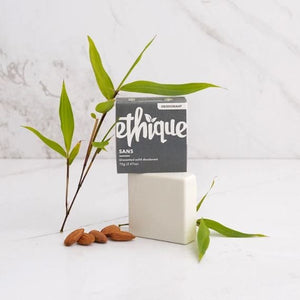 Stay fresh and confident all day long without the the need for baking soda or aluminium. This solid deodorant bar uses magnesium hydroxide, zinc oxide and bamboo to combat moisture and odor. Bamboo has powerful absorption qualities allowing it to absorb 200% of its own weight in moisture! The Sans bar is unscented and ideal for sensitive skin with jojoba and sweet almond oil for silky smooth underarms. Each bar you use will prevent two 100ml plastic bottles entering landfill.