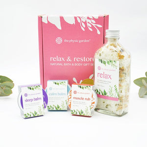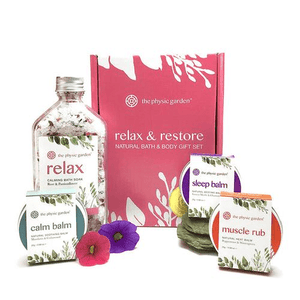 The relax and restore gift set includes mandarin and cedarwood Calm Balm, perfect to keep in your bag to help you keep your cool through busy days. Afterwards, soak those worries away with Relax Bath Soak, with Rose, Passionflower and Geranium. Massage some muscle rub into those sore spots, then lather-up in some heavenly lemon myrtle and lavender sleep balm for a restful night.