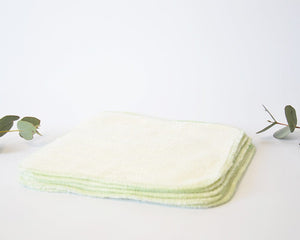 Did you know you can save hundred by using washable baby wipes instead of purchasing disposable single use wipes? These quality bamboo and organic cotton baby wipes are made from durable bamboo and soft 100% certified organic cotton and at 20 x 20 cm they are the perfect size for wiping away mess. These wipes offer you a planet saving and natural alternative to single use baby wipes. Wash your baby's bottom gently with pure organic softness, save you money, use less energy and reduce exposure to harmful chemicals in alcohol based baby wipes. Australian Owned.