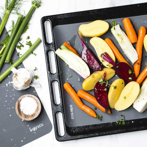 - Reusable alternative to baking parchment paper and aluminium foil to line sheet trays and sheet roasting trays