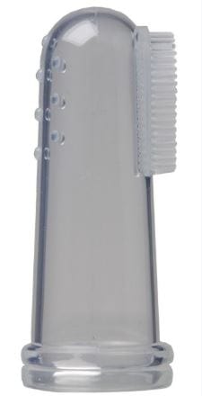 Wash your hands thoroughly with soap and water prior to use. Rinse the finger brush, place on your pointer finger and use to gently brush your baby's teeth in a circular motion. Use the brush side for teeth and the dimple side for gums.