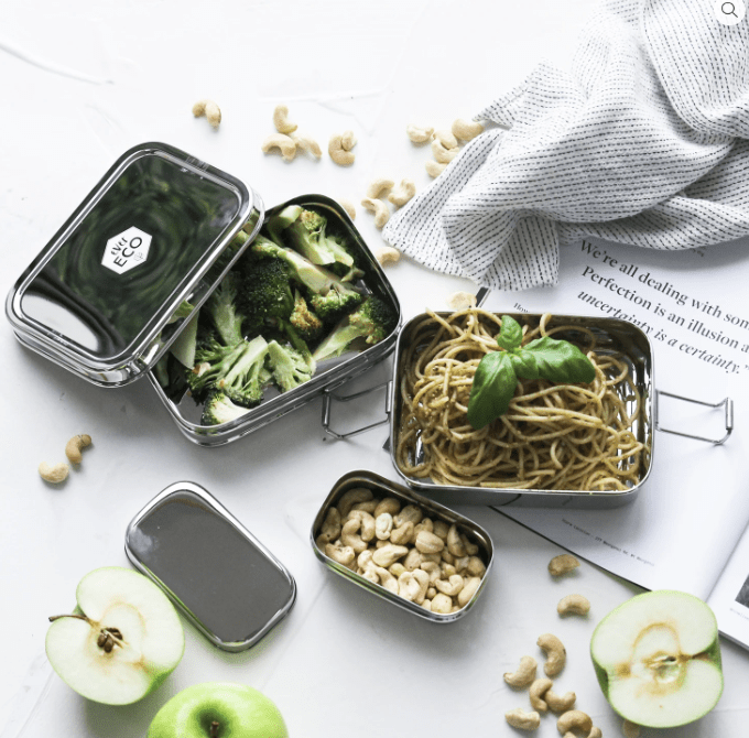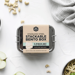 The perfect space efficient stacker stainless steel lunch box that makes balanced eating and meal prep a breeze! This three piece set contains two tiers and a mini container to pack lunch and a snack.