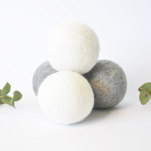 These dryer balls are made from 100% pure Australia wool. Using dryer balls can reduce the need for ironing, reduce drying time, reduce static and soften fabric. These wool dryer balls are 100% natural, zero waste and chemical free. They are really easy to use, just put 3 balls in the dryer with your load of washing. Each pack comes with 3 grey and 3 white balls, use the grey for dark fabric and the white for light fabrics.