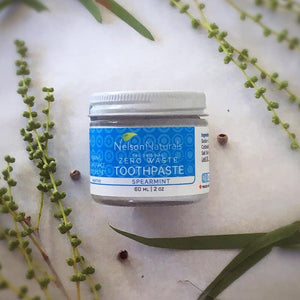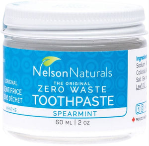 Make the switch to these fabulous recyclable glass and tin toothpaste jars. A mess-free, convenient, portable toothpaste with plastic free packaging. Perfect for travel or brushing on the go. This natural toothpaste is free from fluoride, glycerin and SLS. The spearmint essential oil in this formula makes for a refreshing brushing experience.